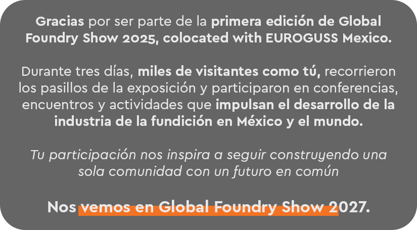 Usos de los Datos Personales: Se utilizarán para la realización de operaciones relacionadas al objeto social de Clúster de la Fundición A.C. y/o contratadas con Clúster de la Fundición A.C. invitaciones a eventos, investigación, presentaciones, registro al portal electrónico y/o promociones; información a clientes y prospectos ó prominentes partes en las operaciones solicitadas y/o de proyectos del Clúster de la Fundición A.C. Estos datos podrán ser puestos a disposición de otras empresas accionistas, relacionadas o afiliadas de Clúster de la Fundición A.C. para idénticos fines; en ningún caso se hará uso distinto a los señalados a cualquier Dato Personal recabado.